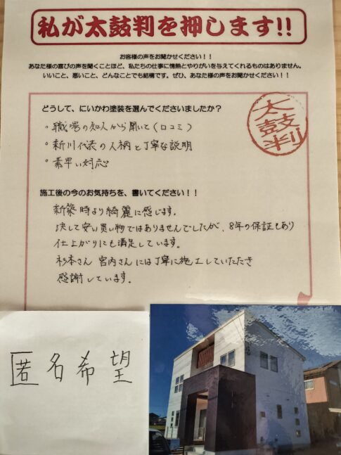 次には、にいかわ塗装の自慢の施工事例をご紹介させていただきますね。