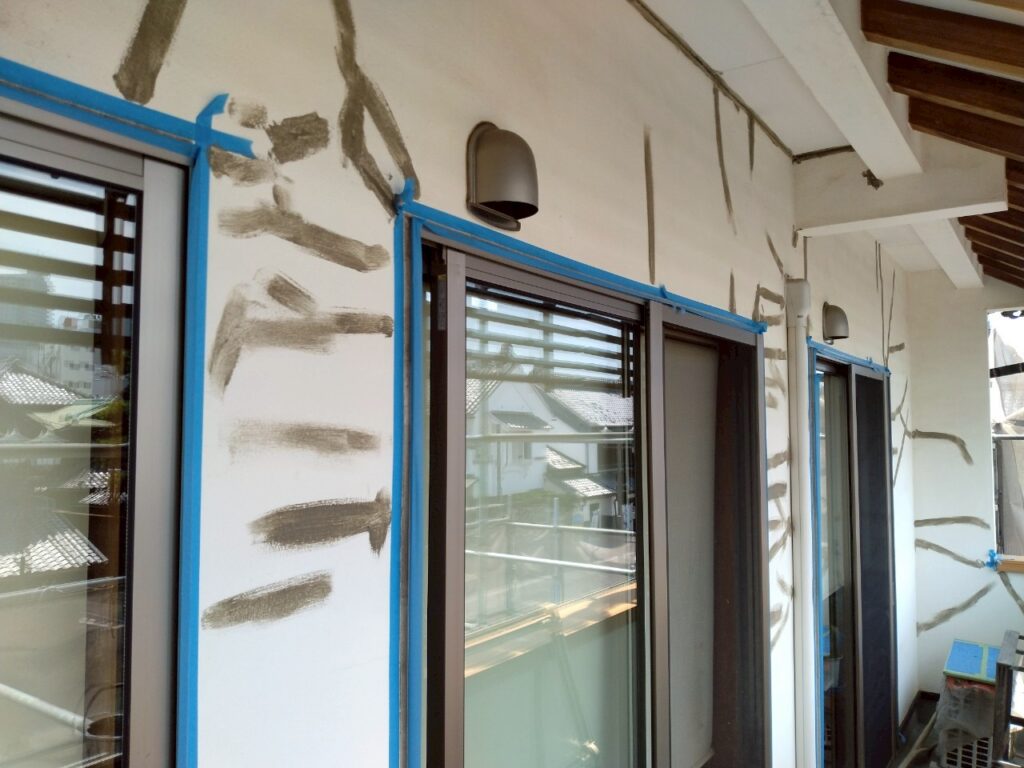モルタル壁なのでフィラーを使って下塗りを行っていきます。