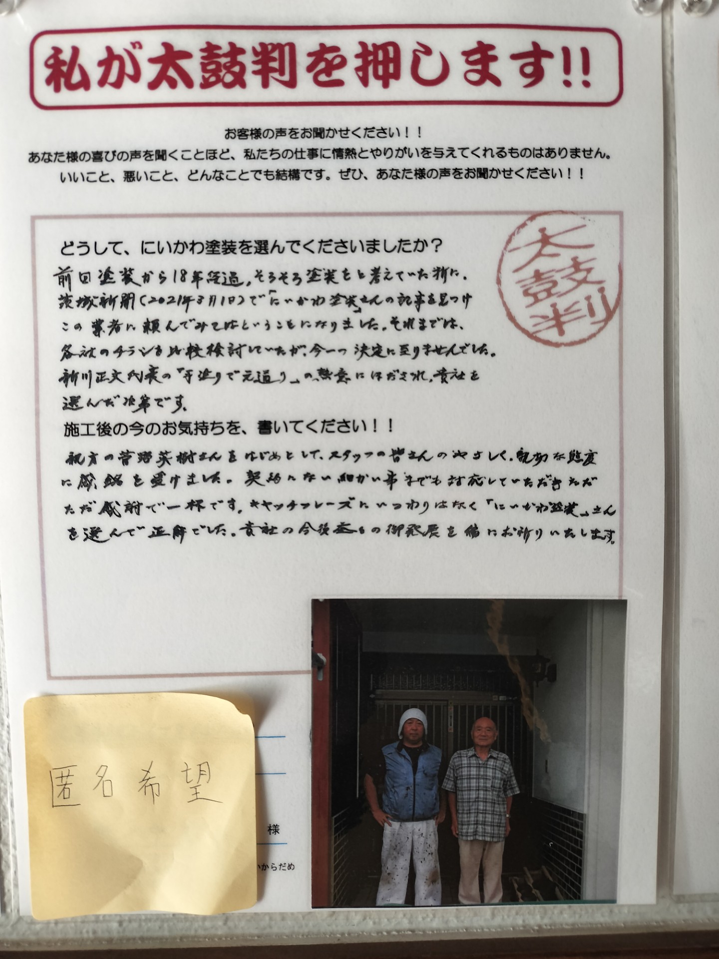 Q.どうして『にいかわ塗装』を選んでくれたのですか?