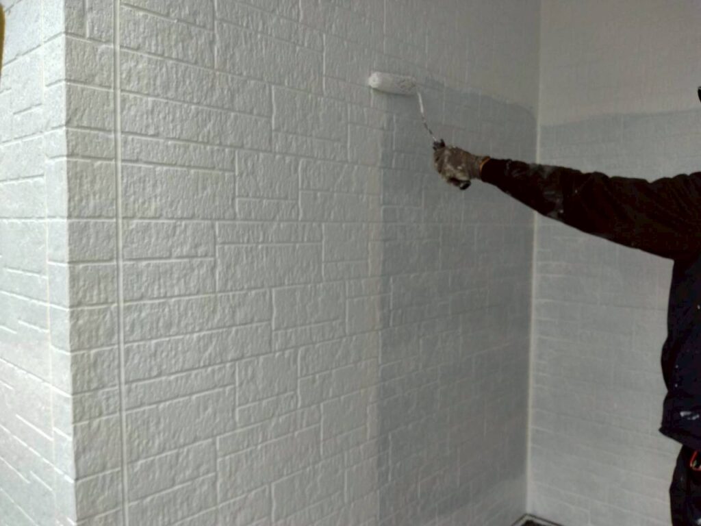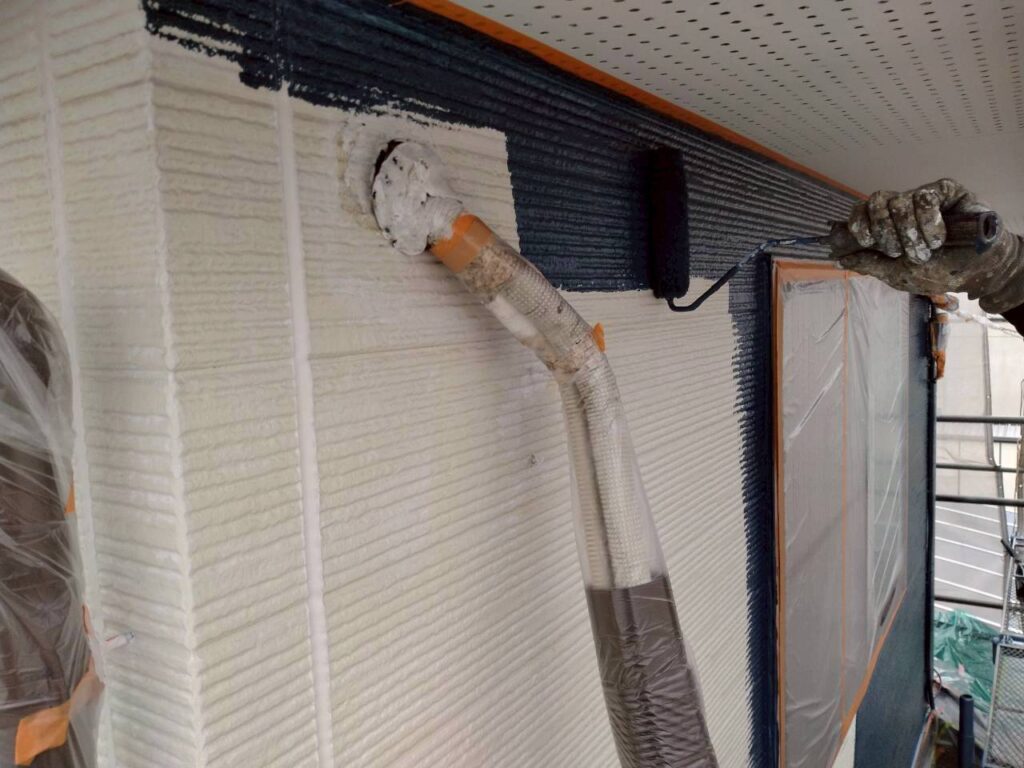 密着性を高めるため、サイディング壁専用下塗り材を使用し均一に塗布しました。