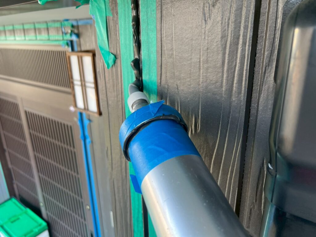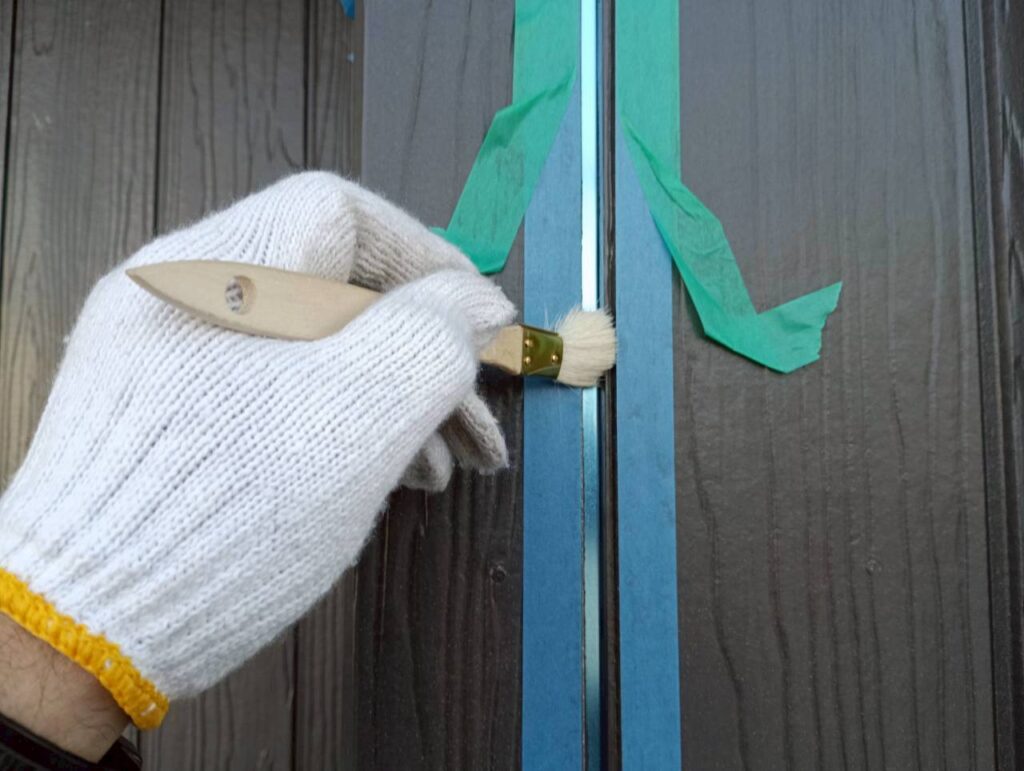 クリヤー塗装の場合、クリヤー塗装が終わってから、コーキングを打ち替えます(後打ち工法)