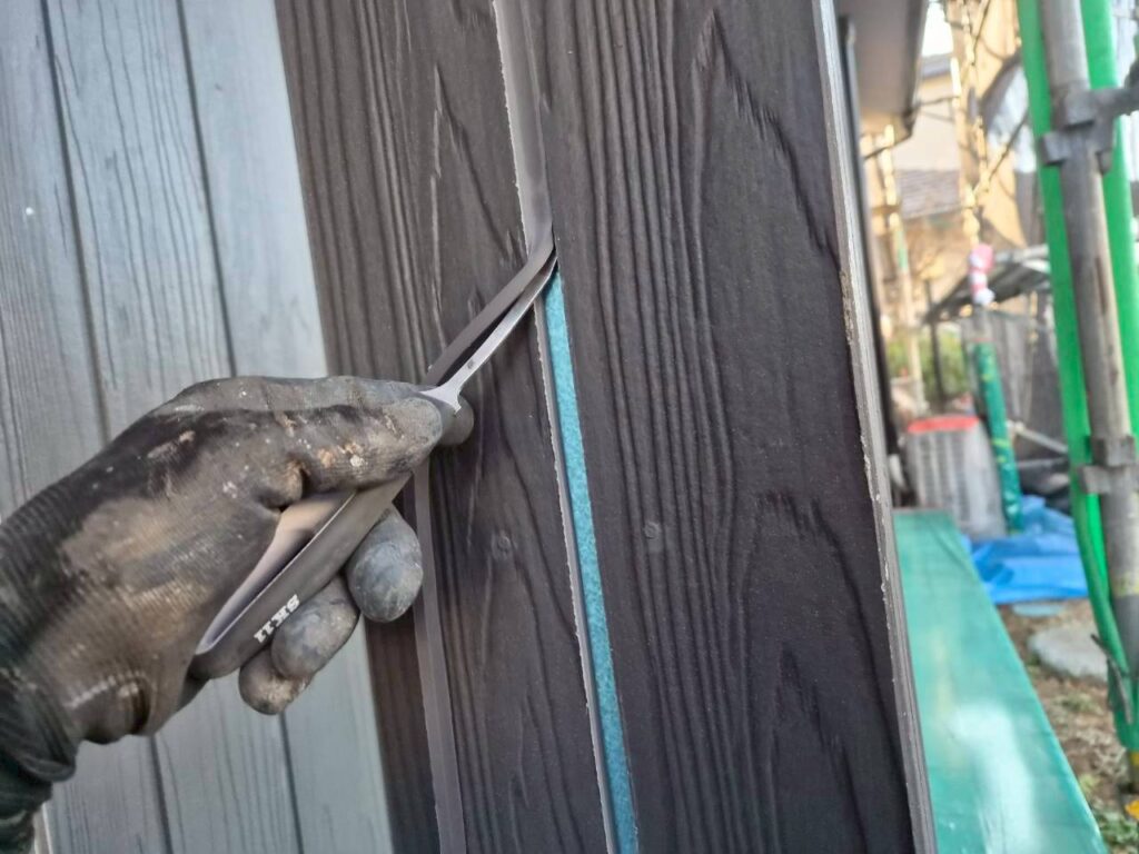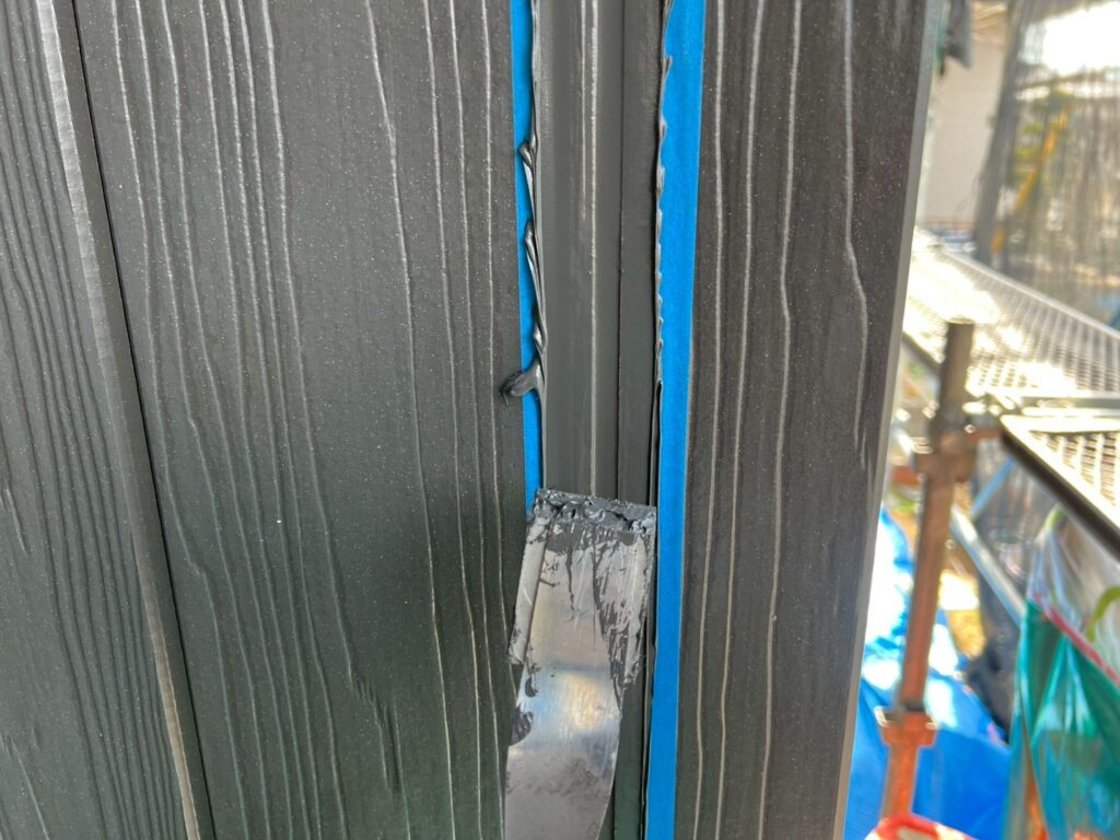 ↓ 次に、新規コーキングを充填し、ヘラで均していきます。