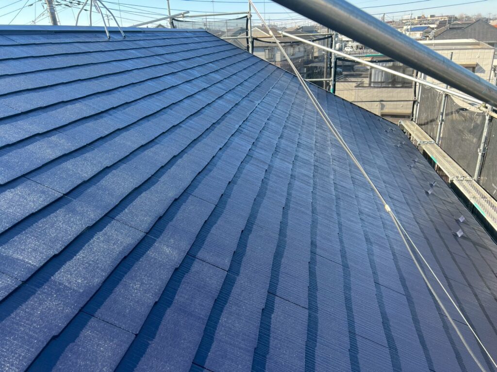 遮熱無機塗料で上塗りを行いました。
