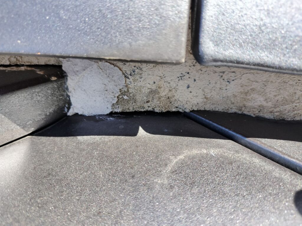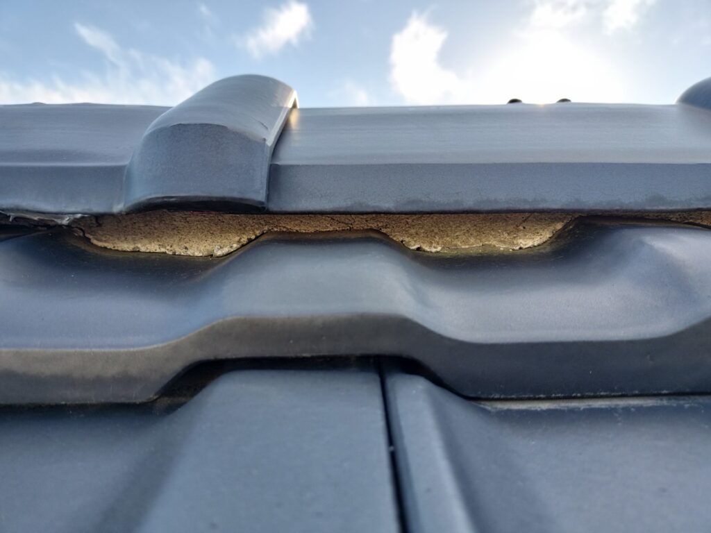 瓦自体は長持ちする屋根素材ですが「棟」や「固定金具」は10年ほど経つと緩みや劣化がでてくることが多いです。