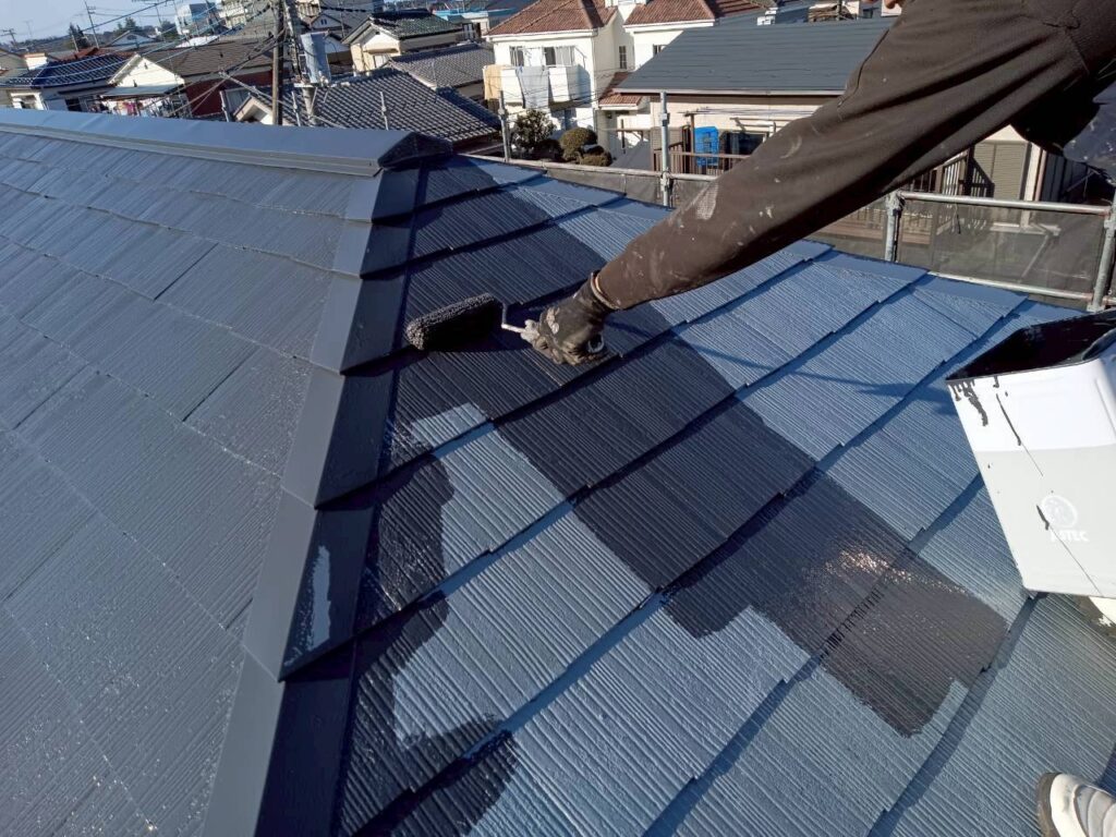 遮熱フッ素塗料で中塗り・上塗りを行いました。
