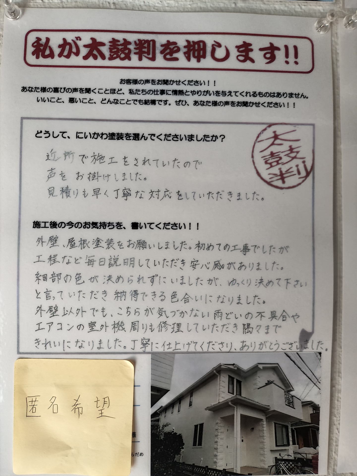 Q.どうして『にいかわ塗装』を選んでくれたのですか?