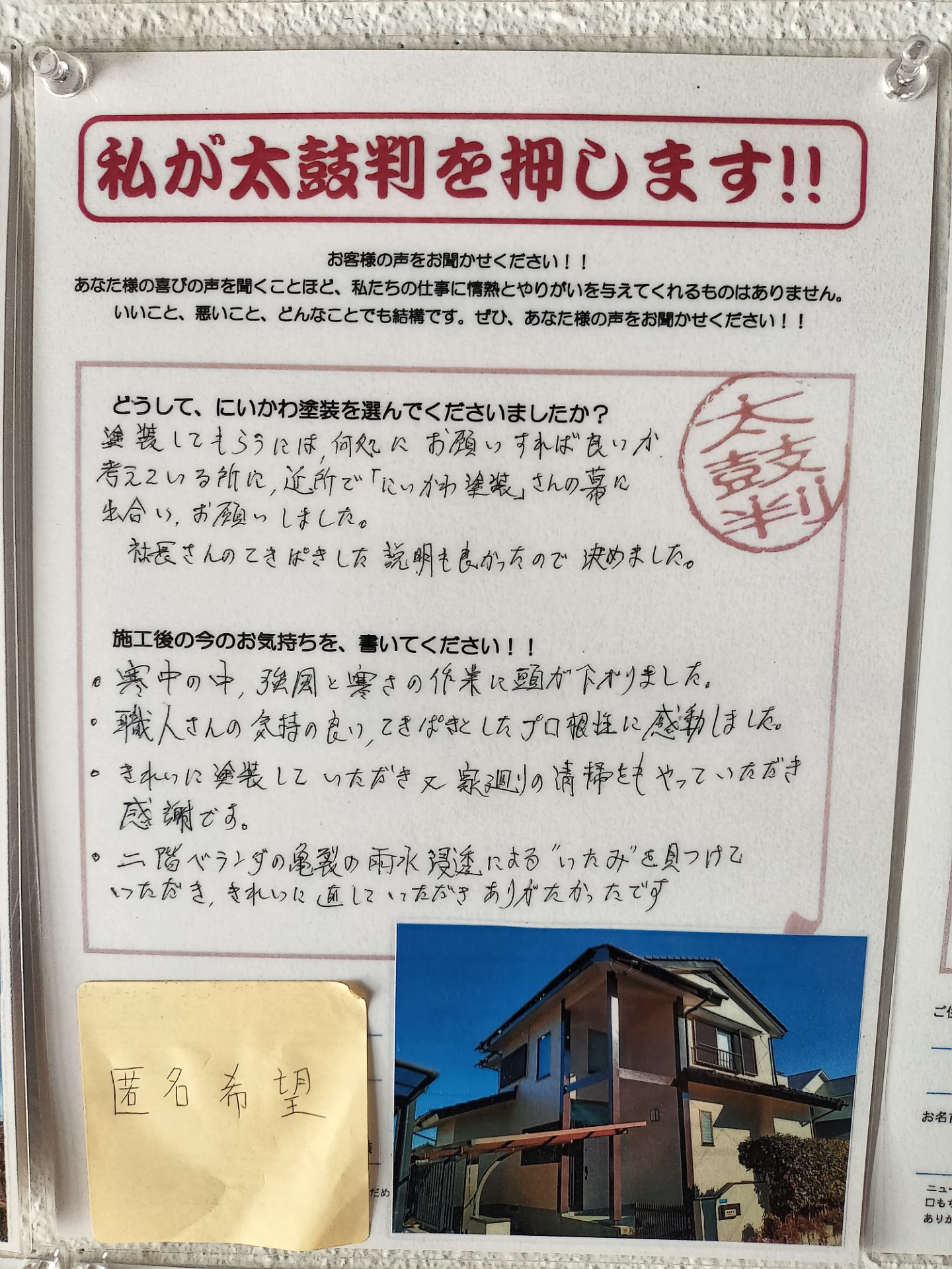 Q.どうして『にいかわ塗装』を選んでくれたのですか?