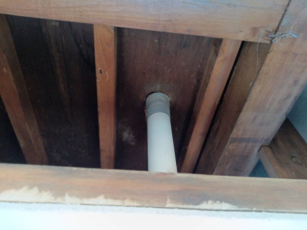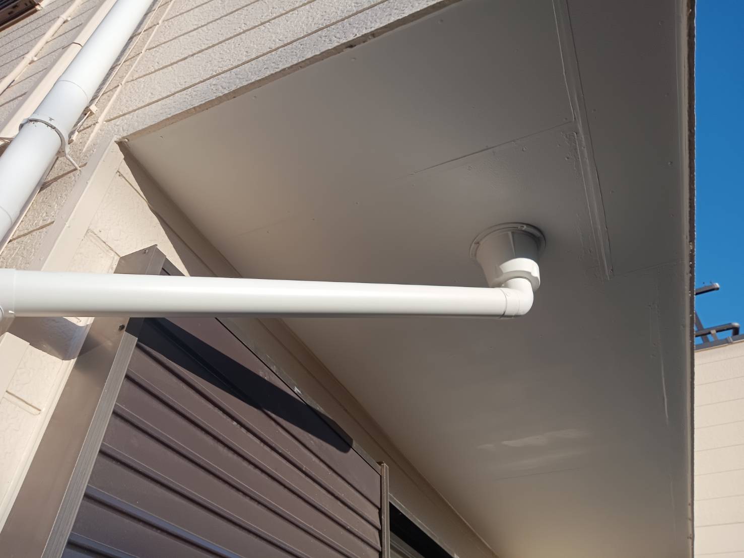 漏水の原因が分かったのでその対策(接続部分を接着固定)を行って漏水確認を行って漏水が無いことを確認してから、剥がした軒天などを復旧しました。