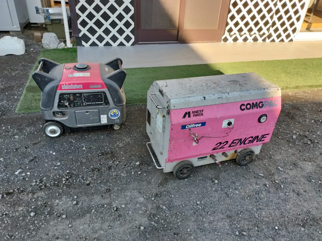 また、発電機やコンプレッサー(吹付作業で空気を送る機械)なども使わない期間が長くなると、バッテリーが上がってしまい、エンジンをかけるのに大変な手間がかかります。