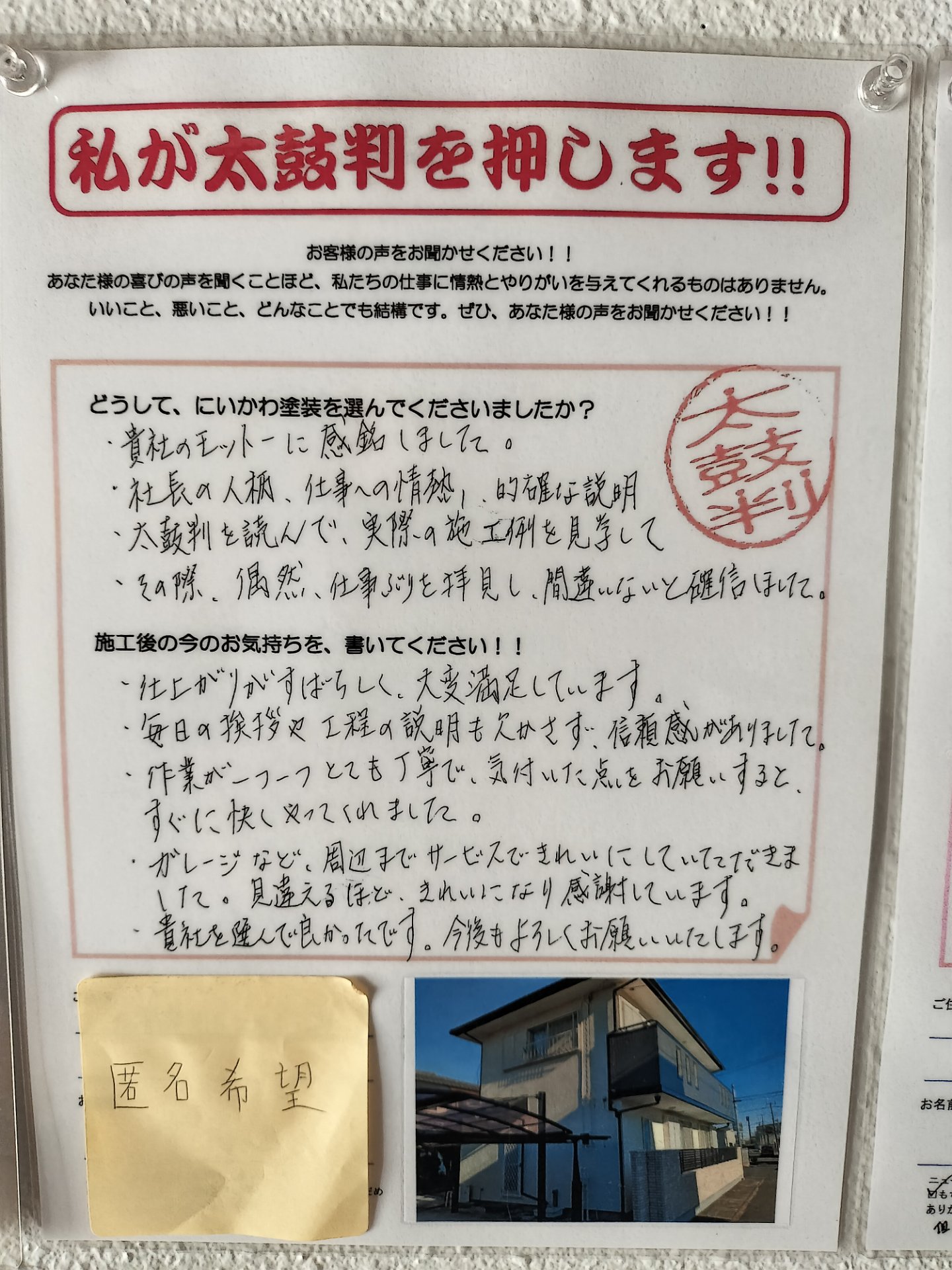 Q.どうして『にいかわ塗装』を選んでくれたのですか?