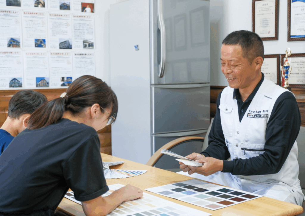 にいかわ塗装は塗装技術者だけの専門店ですので、お見積の内容や工程、他社との違いなども、詳しく具体的に細部まで、ご納得いくまでご説明させていただいておりますので、ご安心ください。