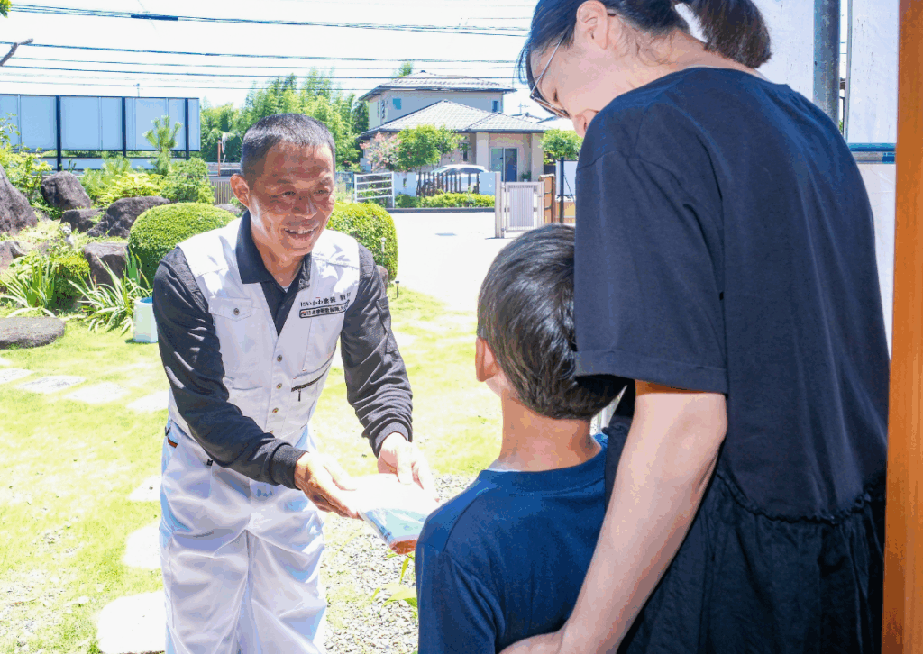 工事開始日が決まりましたら、ご近所様へ工事店からご挨拶をさせていただきます。いろいろなご事情なども踏まえた上で、ご挨拶をさせていただきます。なるべくご在宅の時に伺います。