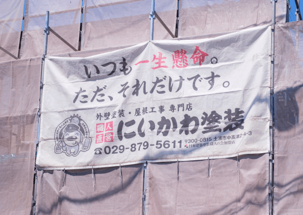 | ※一般の方が足場に登ってしまうと転落などの危険も伴いますので、施工期間中でも足場に登ったりしないでくださいね。また、子供さんたちが遊んで怪我をされたりすることにも気をつけてくださいね。 |