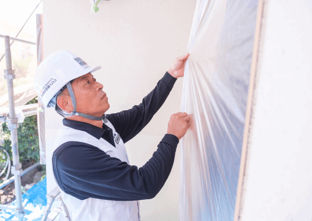 ただ、養生と言っても奥が深く、開閉ができるドアには「開閉ドア養生」、夏場であれば、窓にそよ風を入れることができる「窓養生」や、北海道であれば「雪よけ養生」など、様々な技術があります。